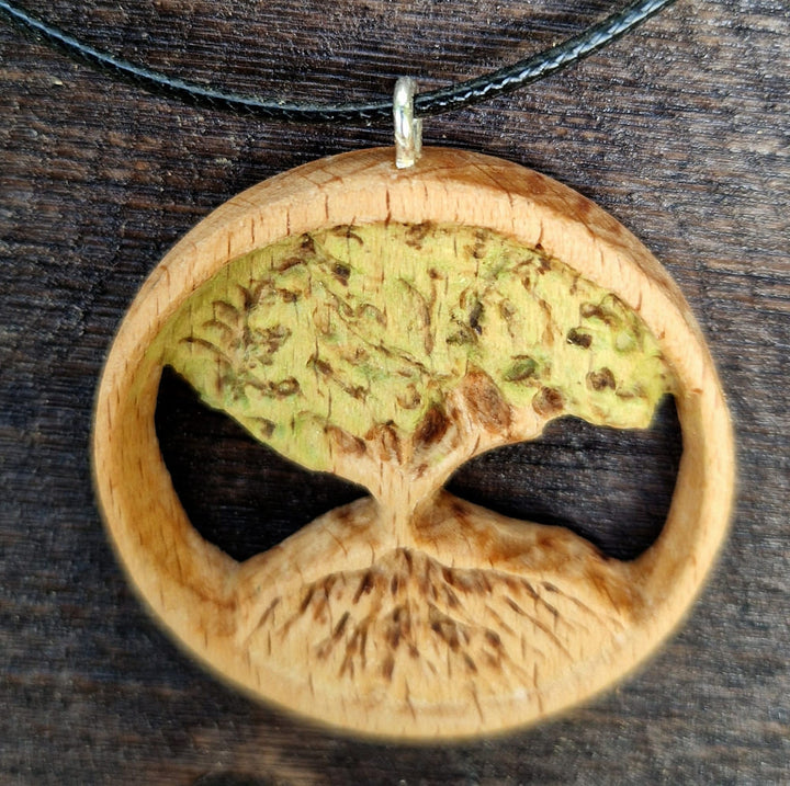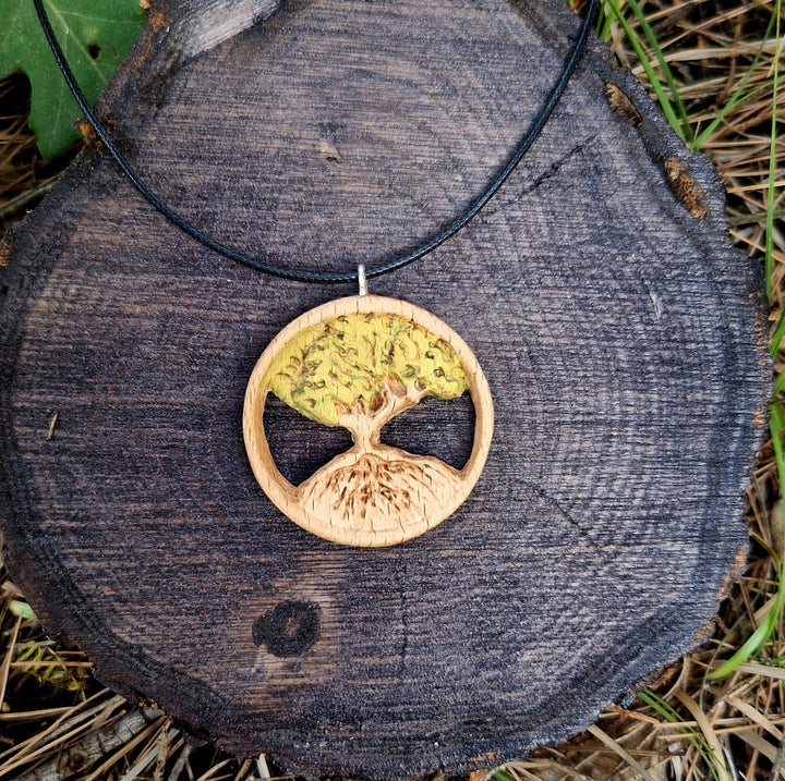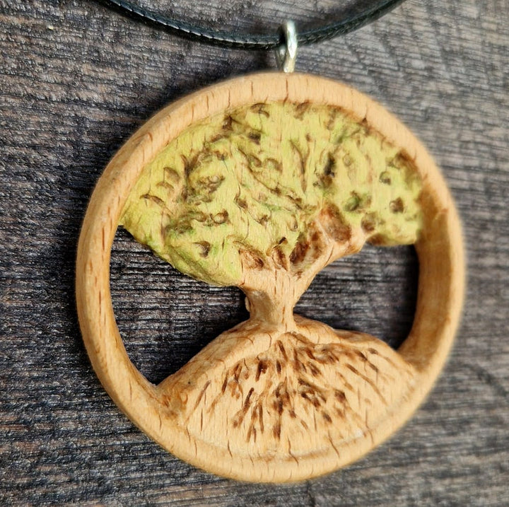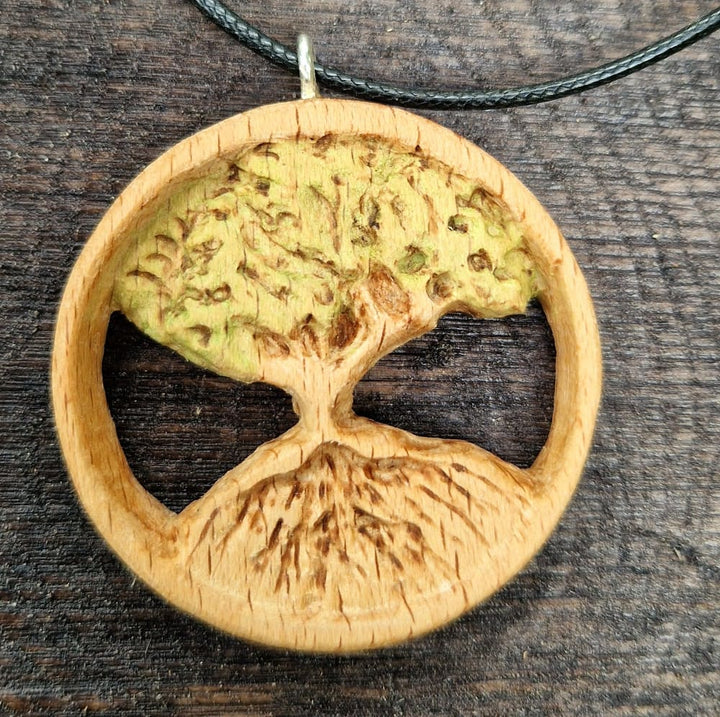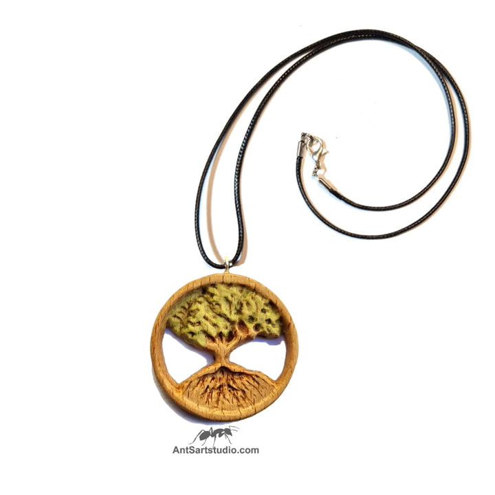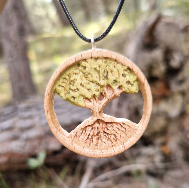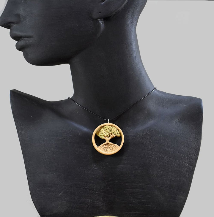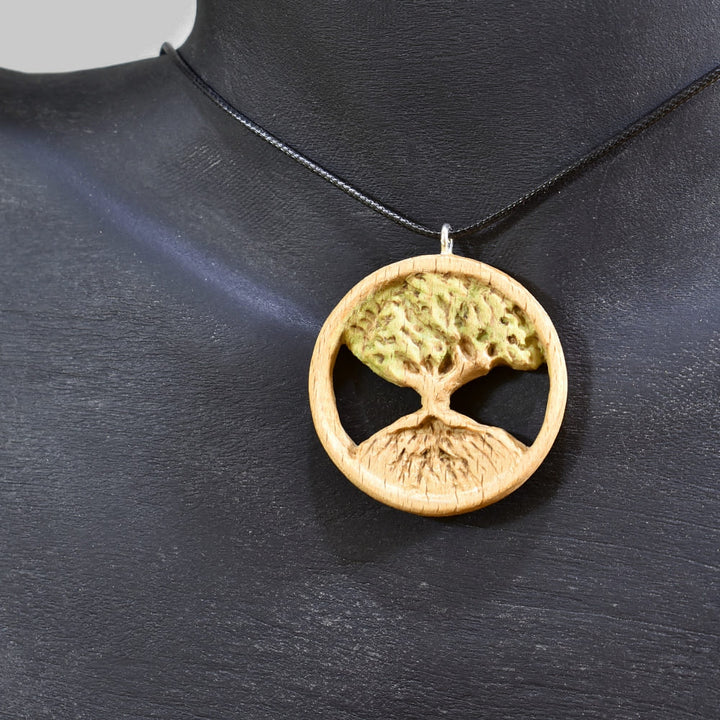 Collana con albero della vita in legno intagliato a mano 2. Gioiello naturale artigianale